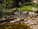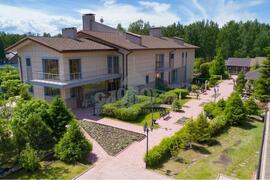 Территория: Участок оформлен по индивидуальному ландшафтному проекту. На территории расположены: березовая роща, пруд, водопад, три беседки из байкальского кедра, баня. Подведены центральные коммуникации: холодная вода и канализация. К дому ведёт асфальтированная дорога.