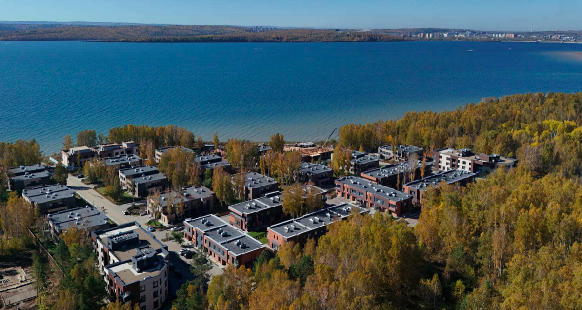 - Благодаря особенностям рельефа, вы сможете любоваться заливом прямо из окон своих домов. Помимо реки, благоприятный микроклимат создает лесной массив вокруг поселка, а также деревья, которые мы бережно сохраняем в жилой зоне.