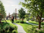 - Набережная – будущий центр притяжения жителей поселка. Мы создаем парковую территорию для отдыха с прогулочной зоной, велодорожками, детскими площадками для малышей и детей постарше, спортивной площадкой и спуском в воду для техники.