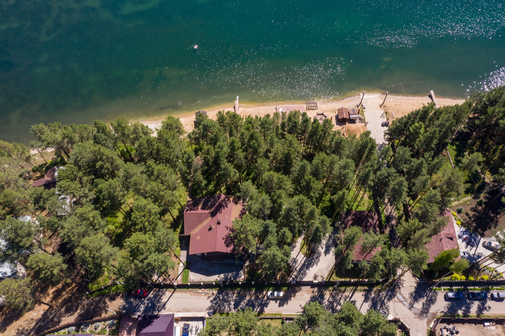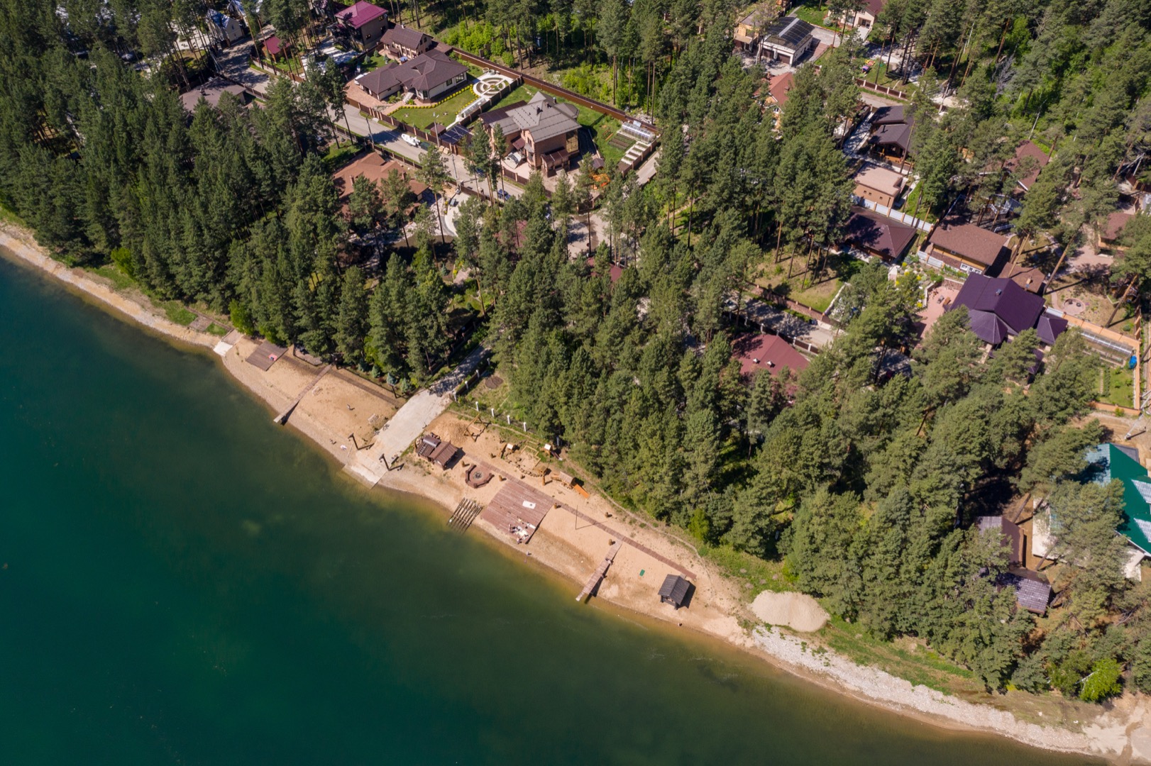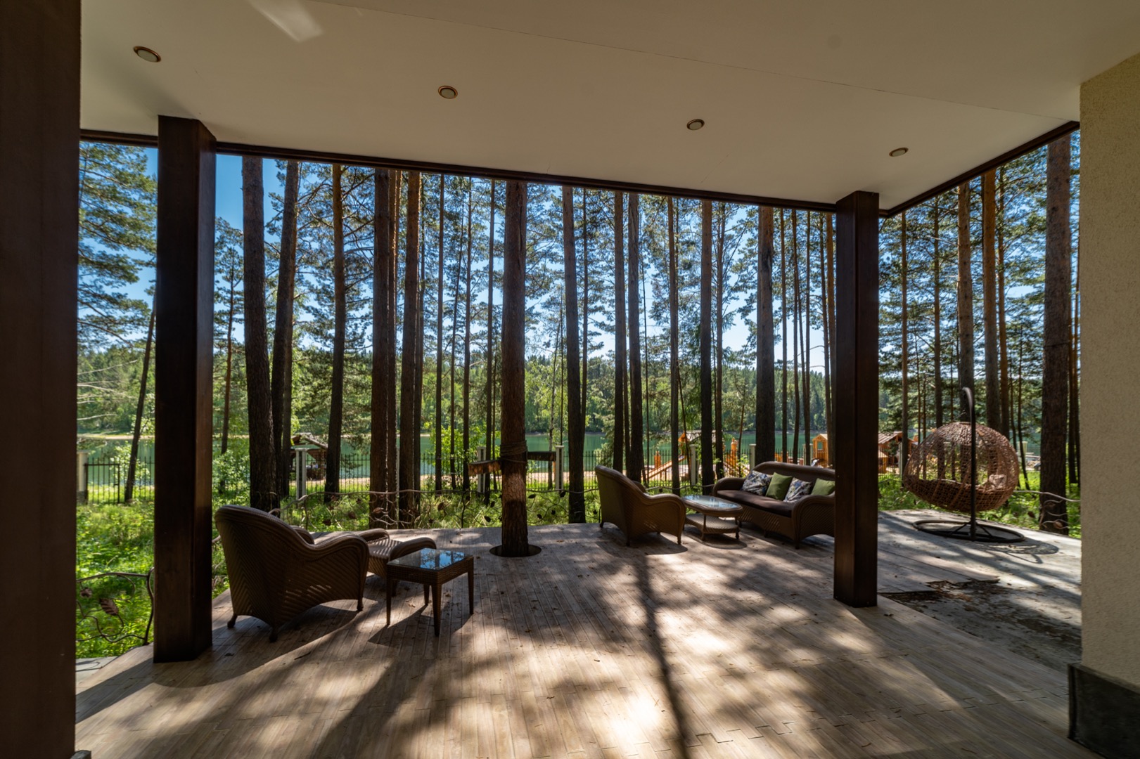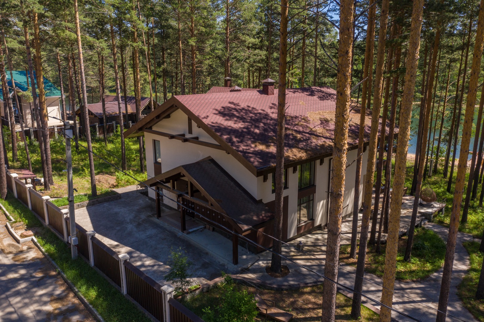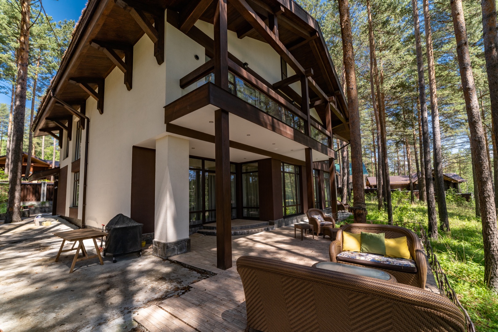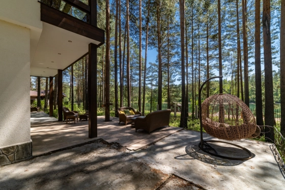 Основной дом 330 м2 на участке размером 30 соток на котором с любовью сохранили 140 сосен. В доме панорамные окна с видом на залив и пирс, песчаный пляж с глубоким красивым заливом, детскую площадку с большой качелей и беседку на воде.