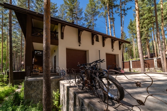 Гостевой дом: гараж на 3 авто на первом уровне, на втором уровне 110 м2 разместилась гостевые комнаты с кухней-столовой и санузлом.