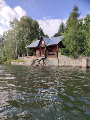 + самый большой плюс - это баня на 1 линии от Ангары и с возможностью окунуться сразу после парения. Выполнена из бруса 18 на 18.
