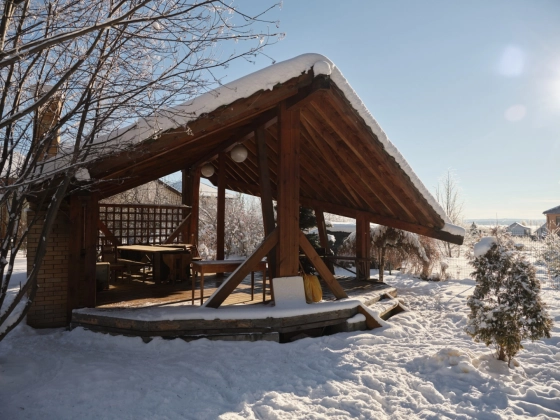 Продаю коттедж с баней на заливе в урочище Щукино на 15 км Байкальского тракта в СНТ Сирень. Дом расположен в 200 метрах от красивого и теплого залива с ПИРСОМ рядом с сосновой рощей. Закрытая и спокойная территория поселка с автоматическими воротами, хорошие и приветливые соседи. Очень правильное и удобное расположение строений на земельном участке общей площадью 20 соток. Автоматические откатные ворота при въезде на участок и сразу ворота в гараж на 2 автомобиля и технику с комнатой для помощников по хозяйству. С лева после гостевой парковки расположен сам дом из бревна общей площадью 126 кв.м.- одноэтажный с мансардным этажом, 3 спальные комнаты и большая кухня-столовая, красивые панорамные окна с видом на участок и в сторону залива и Ангары, собственные санузлы и ванная комната, высокие потолки и удобная планировка. Еще на участке стоит шикарная баня с комнатой для отдыха и своим санузлом и в ней реально можно жить или оставлять гостей на ночлег. А еще красивый архитектурный объект в виде летней беседки с барбекю- красивая, большая, мощная, оригинальная. И завершает весь этот комплекс растениями и естественным ландшафтным дизайном: голубые ели и дуб, сирень и тюльпаны, газоны и кустарники, плодовые деревья, теплица. Все разумно и продумано, с душой и для себя, в хорошем состоянии и с любовью содержалось. Смотрите, выбирайте, владейте и пользуйтесь.