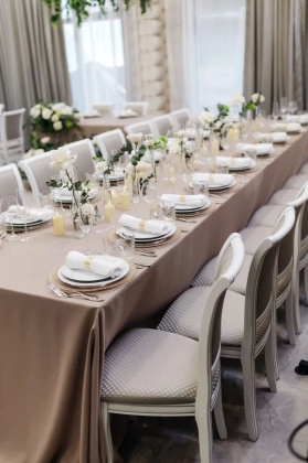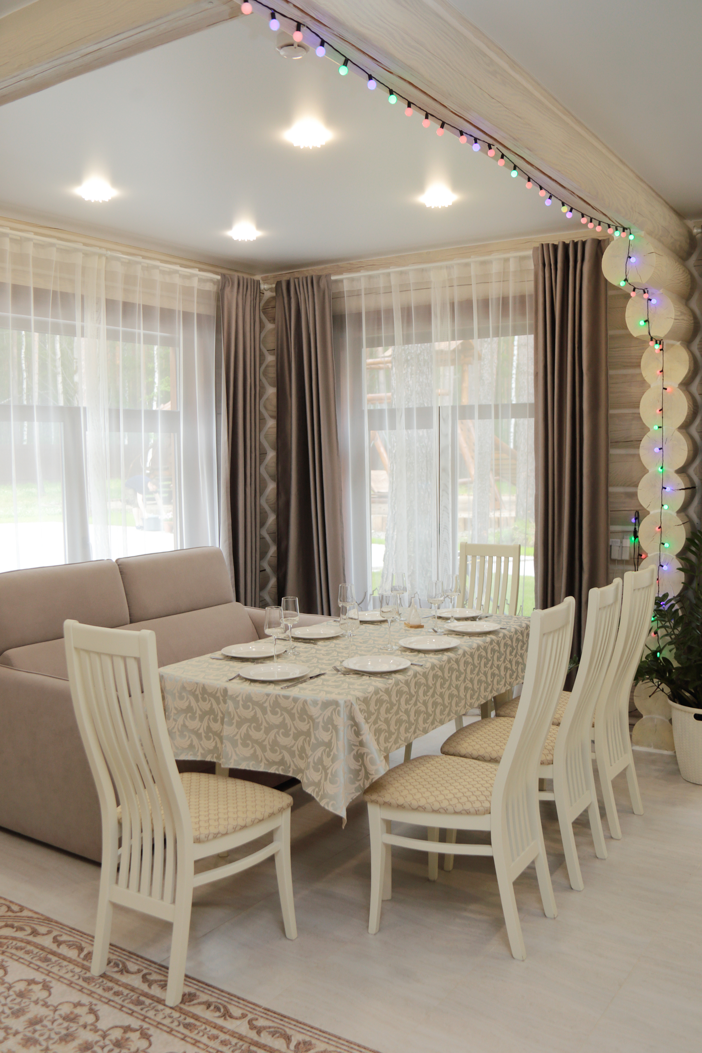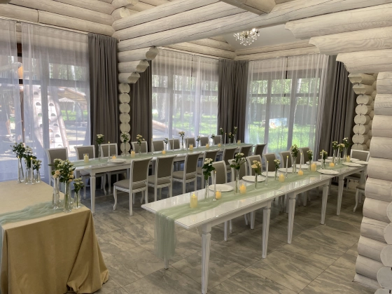 - Отдельно стоящий банкетный зал с панорамными окнами, камином и потолками высотой 5 метров, идеально подходящий для проведения мероприятий, свадеб, банкетов, корпоративов, тимбилдинга, семинаров, ретритов.