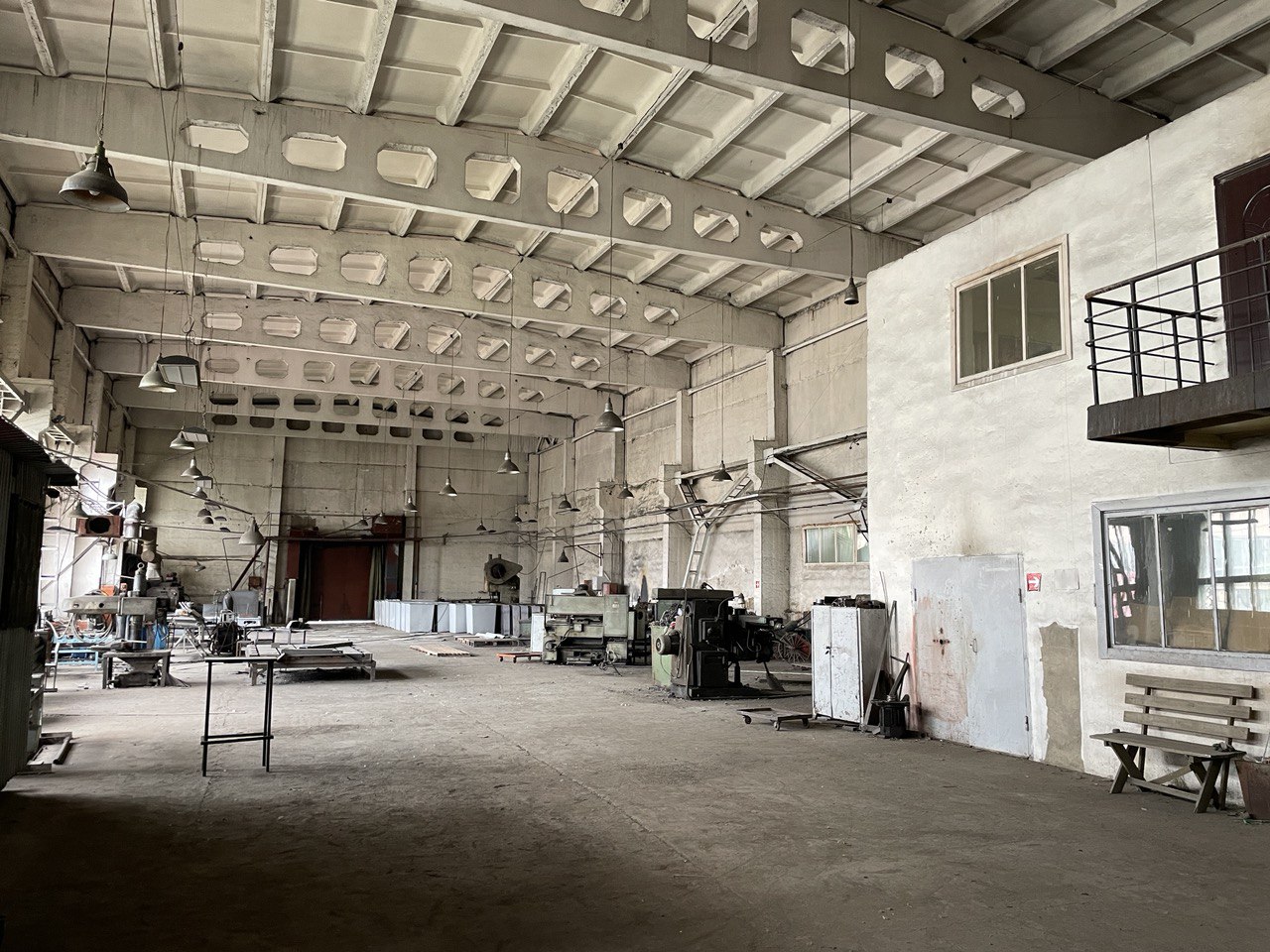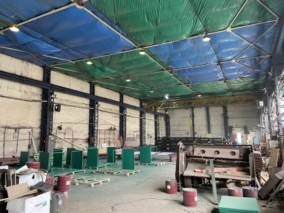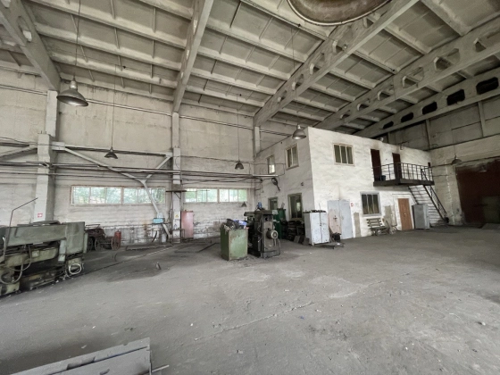 Общая площадь строений 3800 квадратных метров. Высота потолков 12-18 метров. Кран балка 5 тонн.