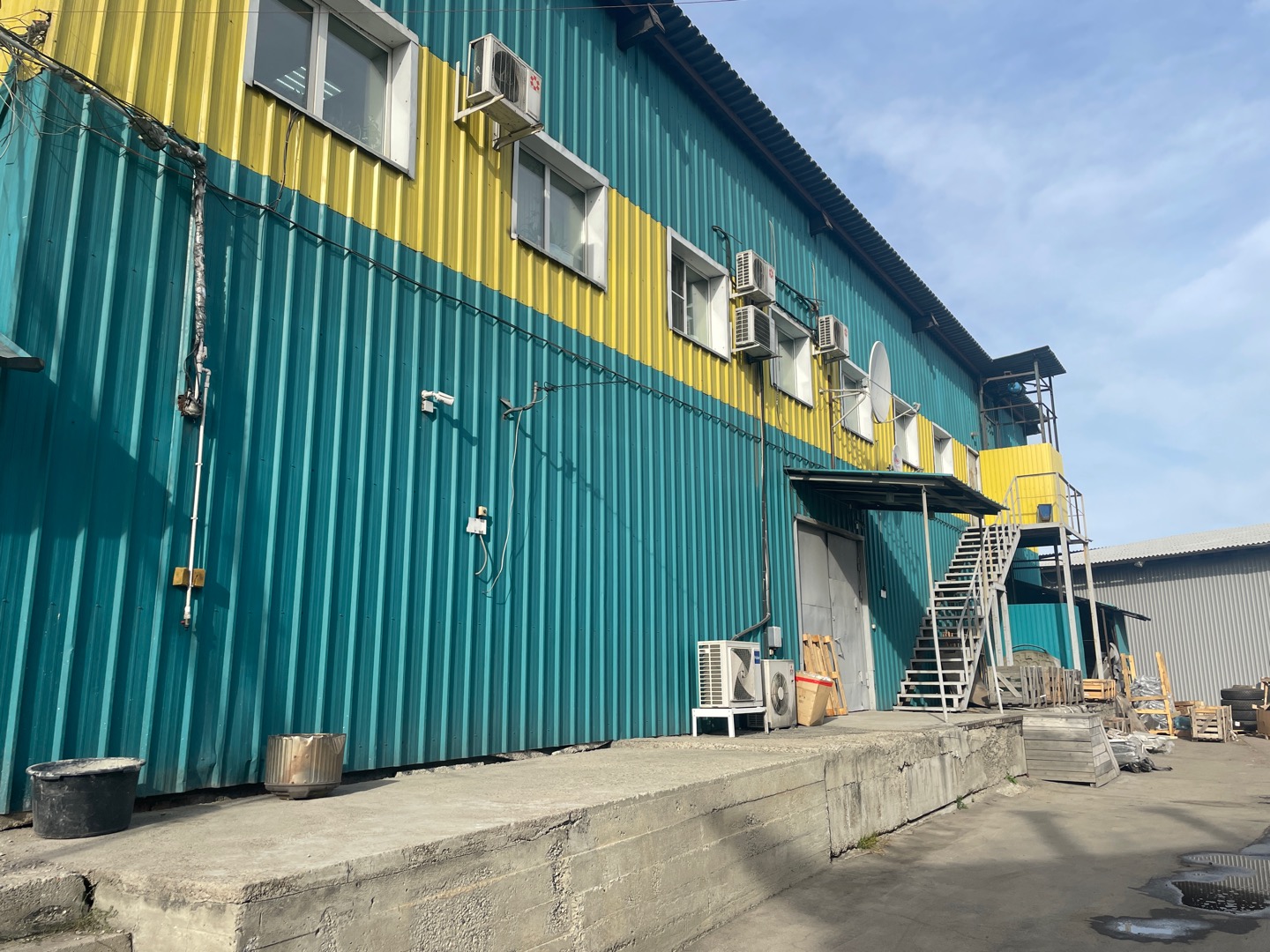 Общая площадь 340 квадратных метров, из которых 303 квадратных метров склад, остальное офисы и санузел. Вся площадь расположена на 1 этаже. Отдельный вход с первой линии, Большие ворота с пандусом с обратной стороны здания для погрузо-разгрузочных работ.
